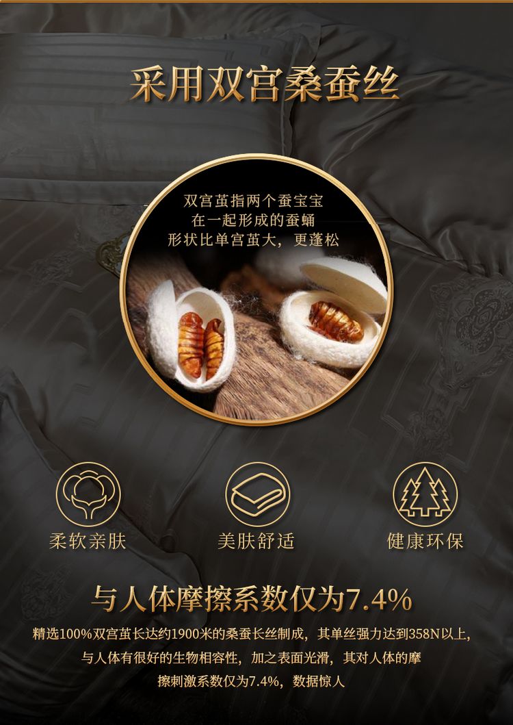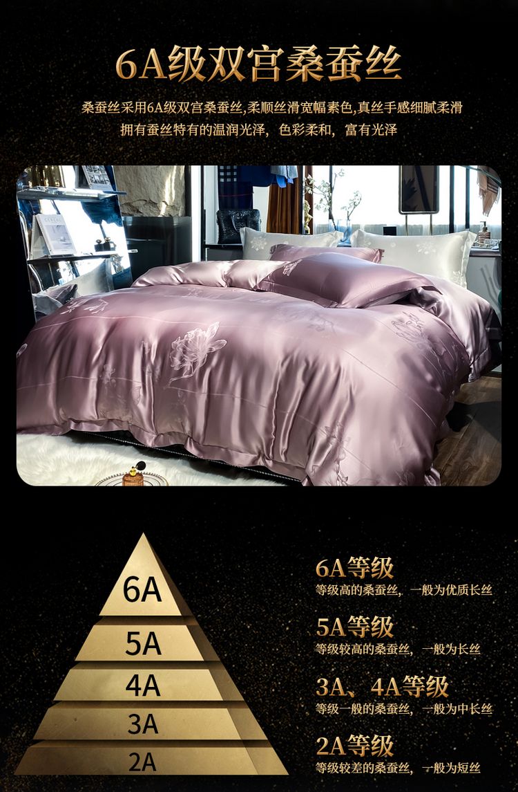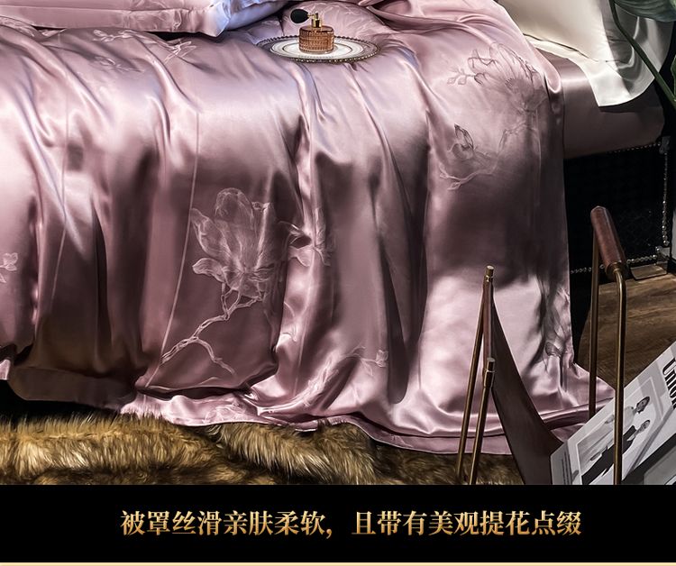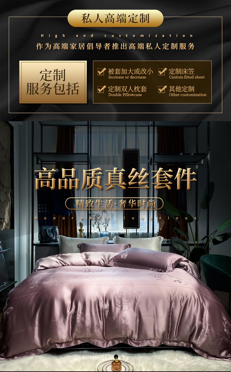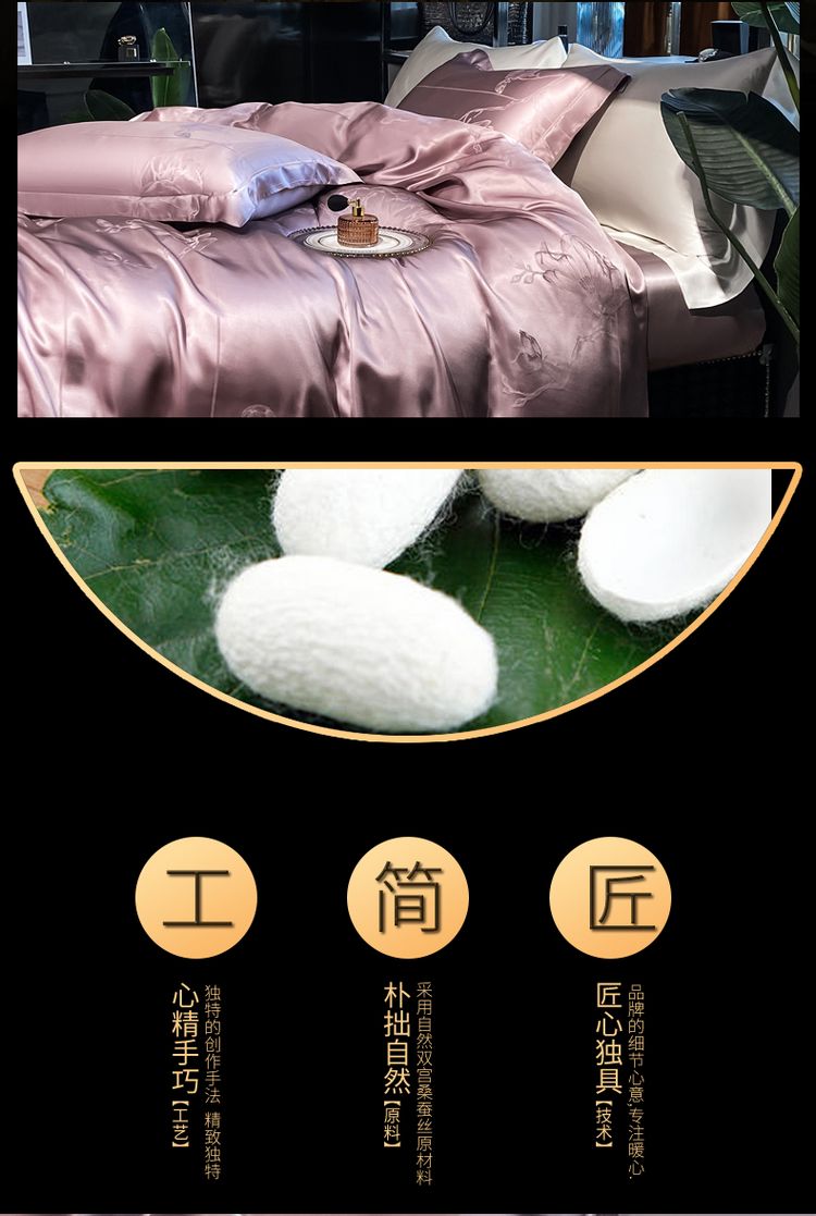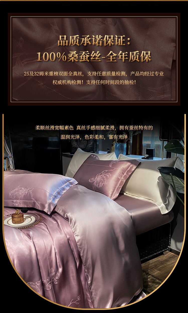 2023新款高端真丝床上用品奢华提花丝滑被套100%桑蚕丝纯棉四件套