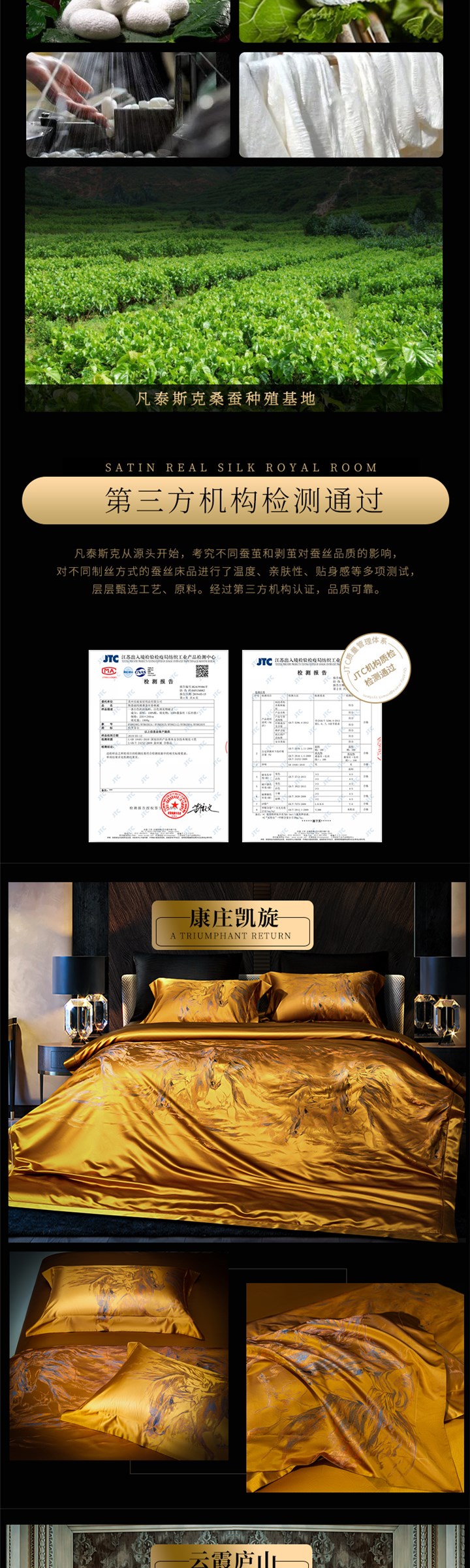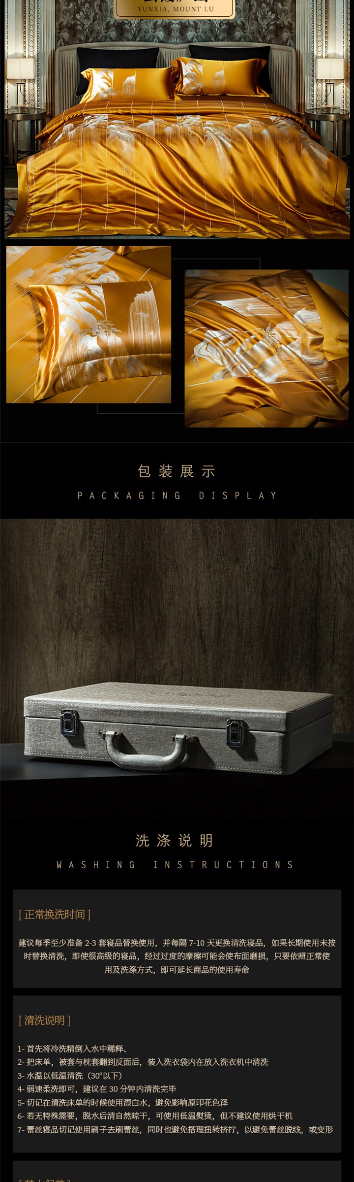 新中式34姆米重磅桑蚕丝色织提花床单套件金色高端真丝床上用品的描述