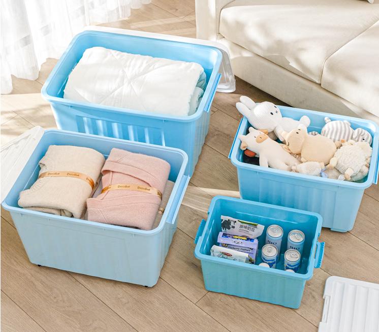 SPACEXPERT 塑料收纳箱 120L蓝色单只 衣物整理箱储物箱搬家箱打包箱 带轮的描述