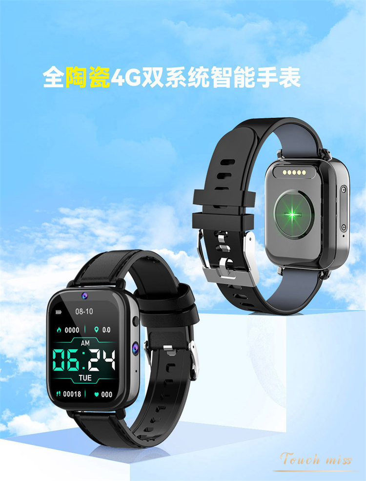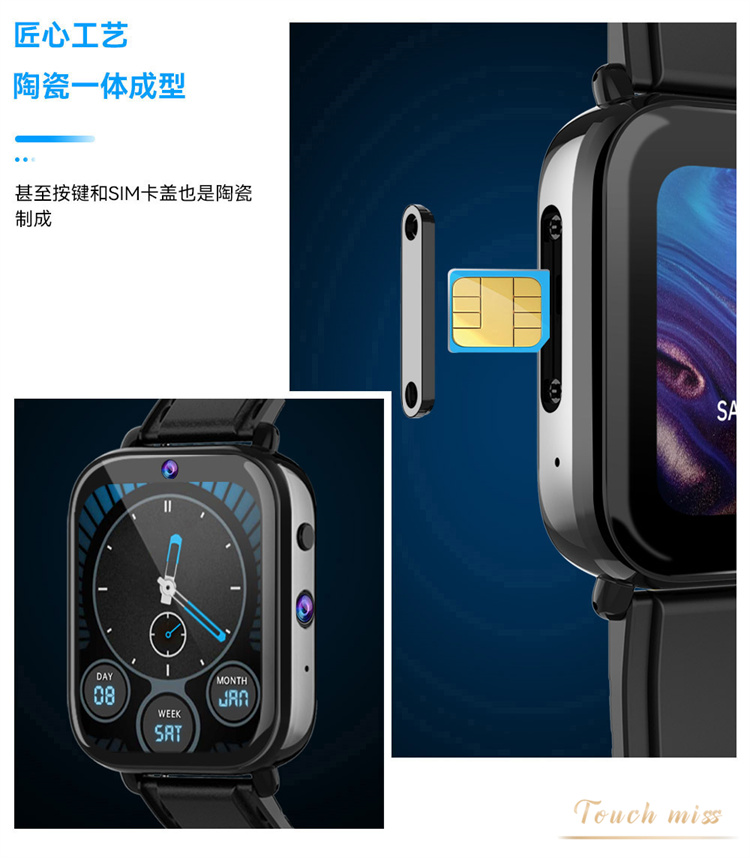 Touch Miss全陶瓷双摄运动智能手表游戏上网视频全网通电话手表