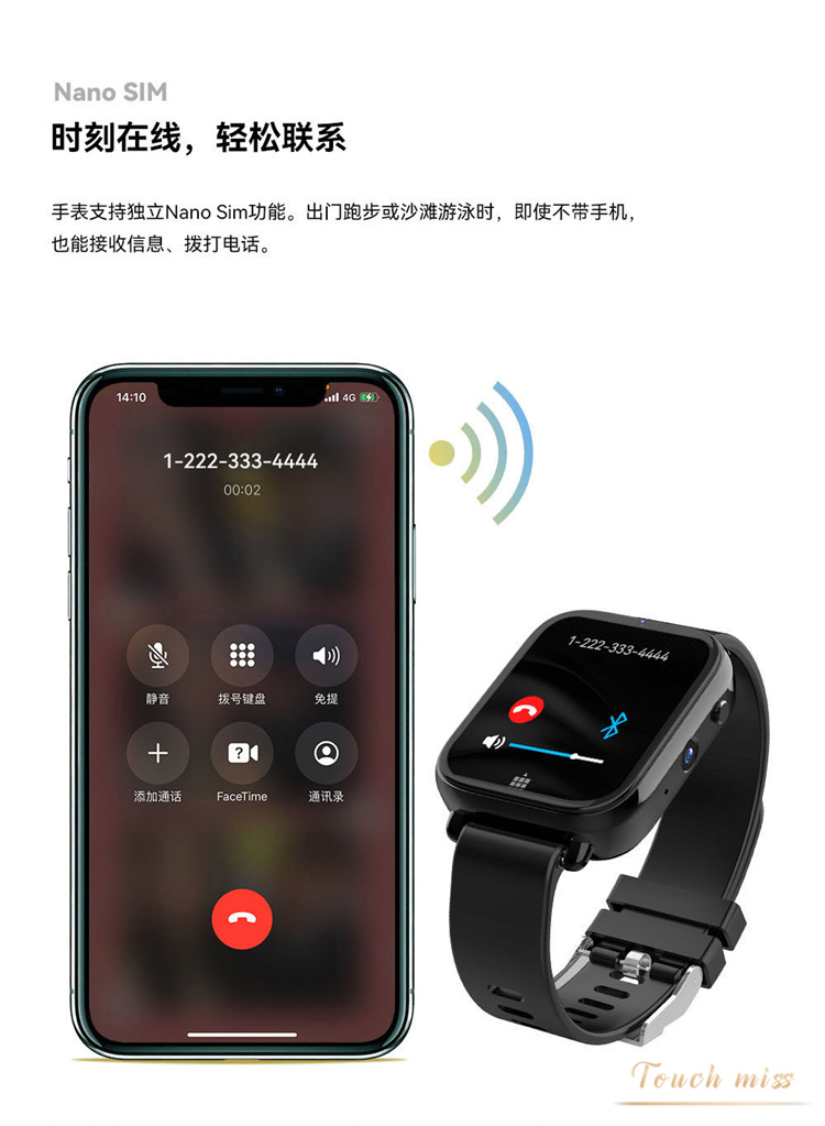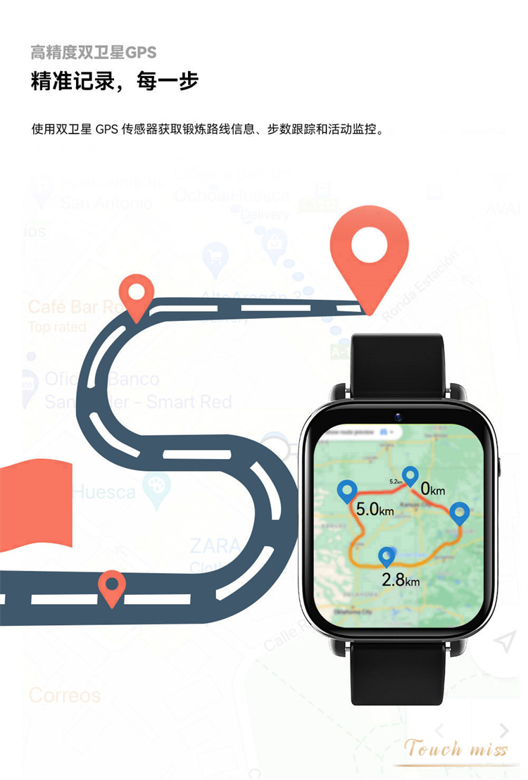 Touch Miss全陶瓷双摄运动智能手表游戏上网视频全网通电话手表的描述