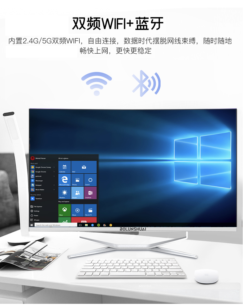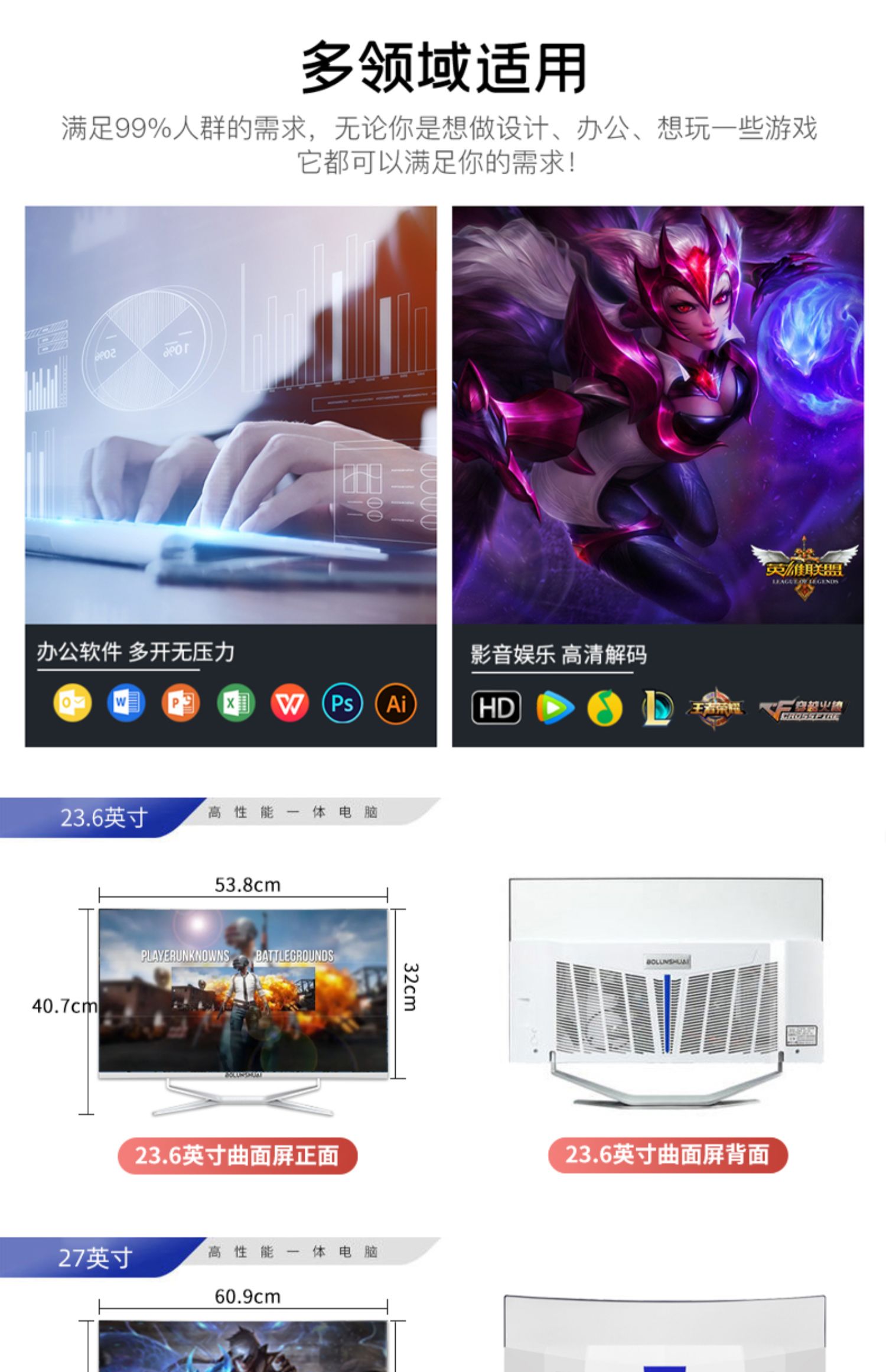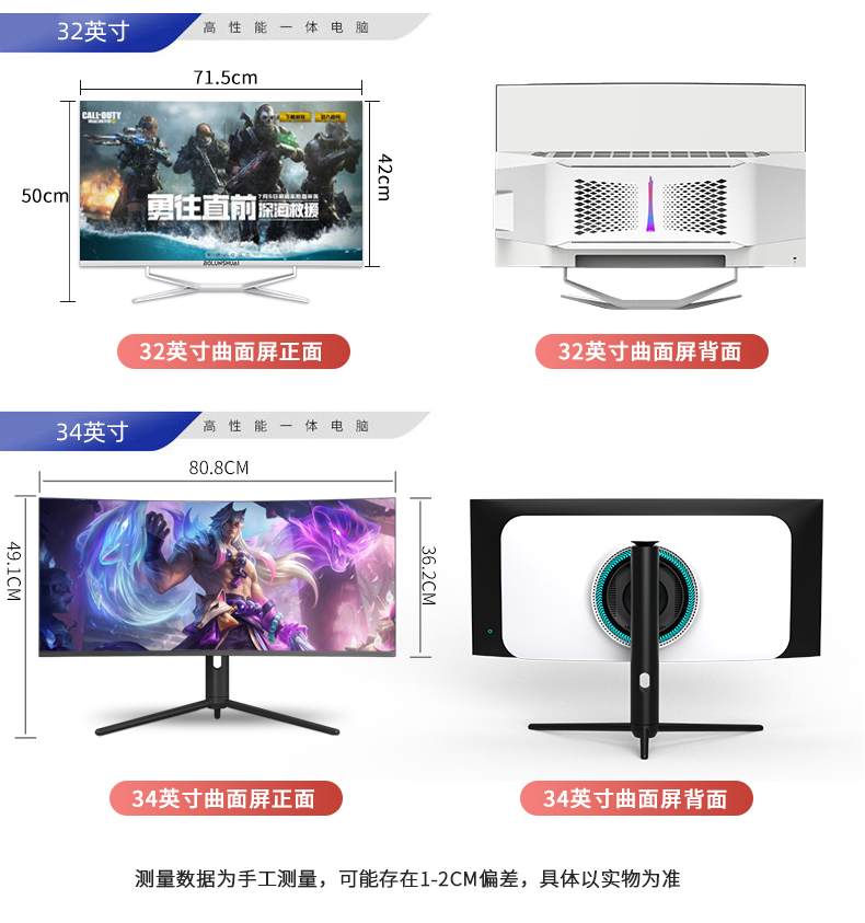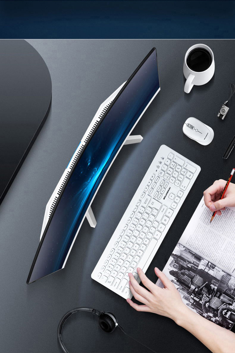 曲面屏一体机电脑办公家用游戏网课学习高清超薄酷睿12代i5i7四核台式主机高配4K八核整机全套独显台式机的描述