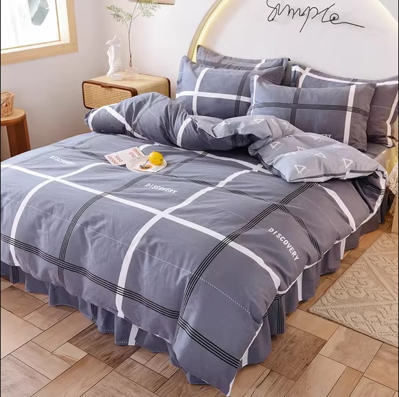 北欧条纹格纯棉全棉100男士床裙款四件套1.5m床单1.8米被套床笠罩