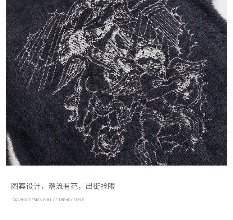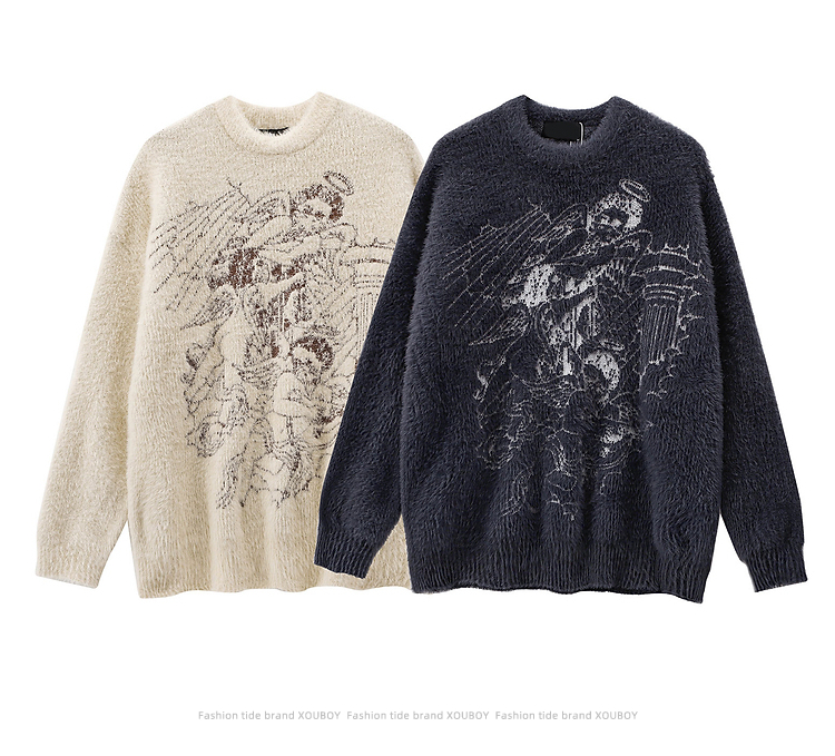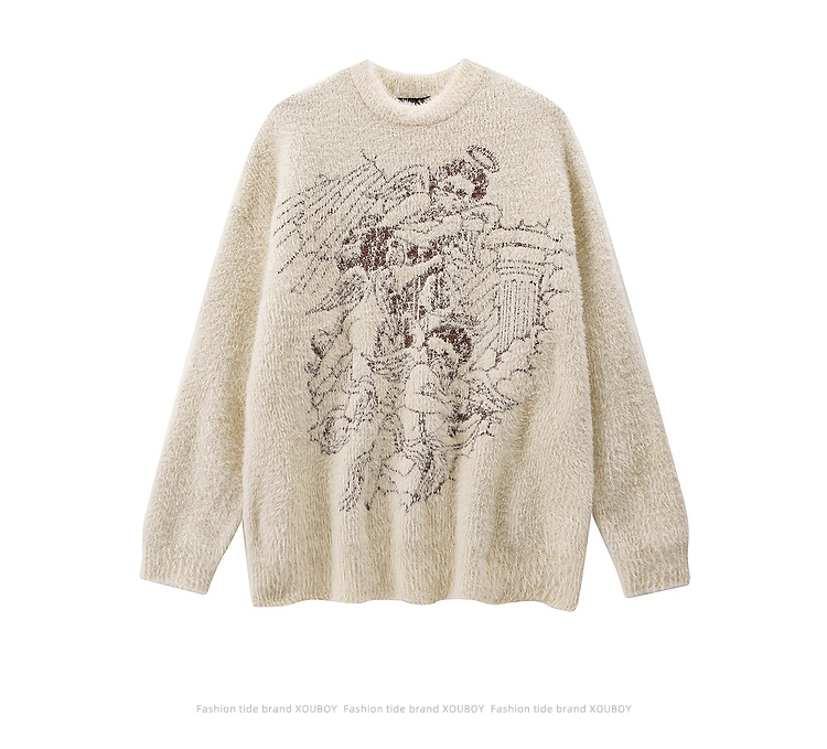 vintage美式复古创意提花圆领毛衣男女秋冬hiphop情侣长袖针织衫的描述
