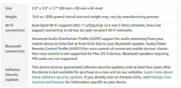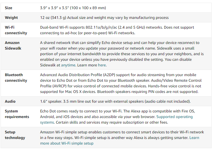 Echo Dot 四代技术参数