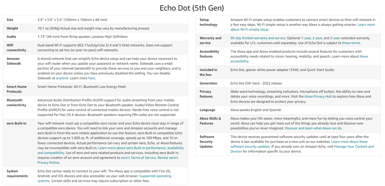 Echo Dot 五代技术参数